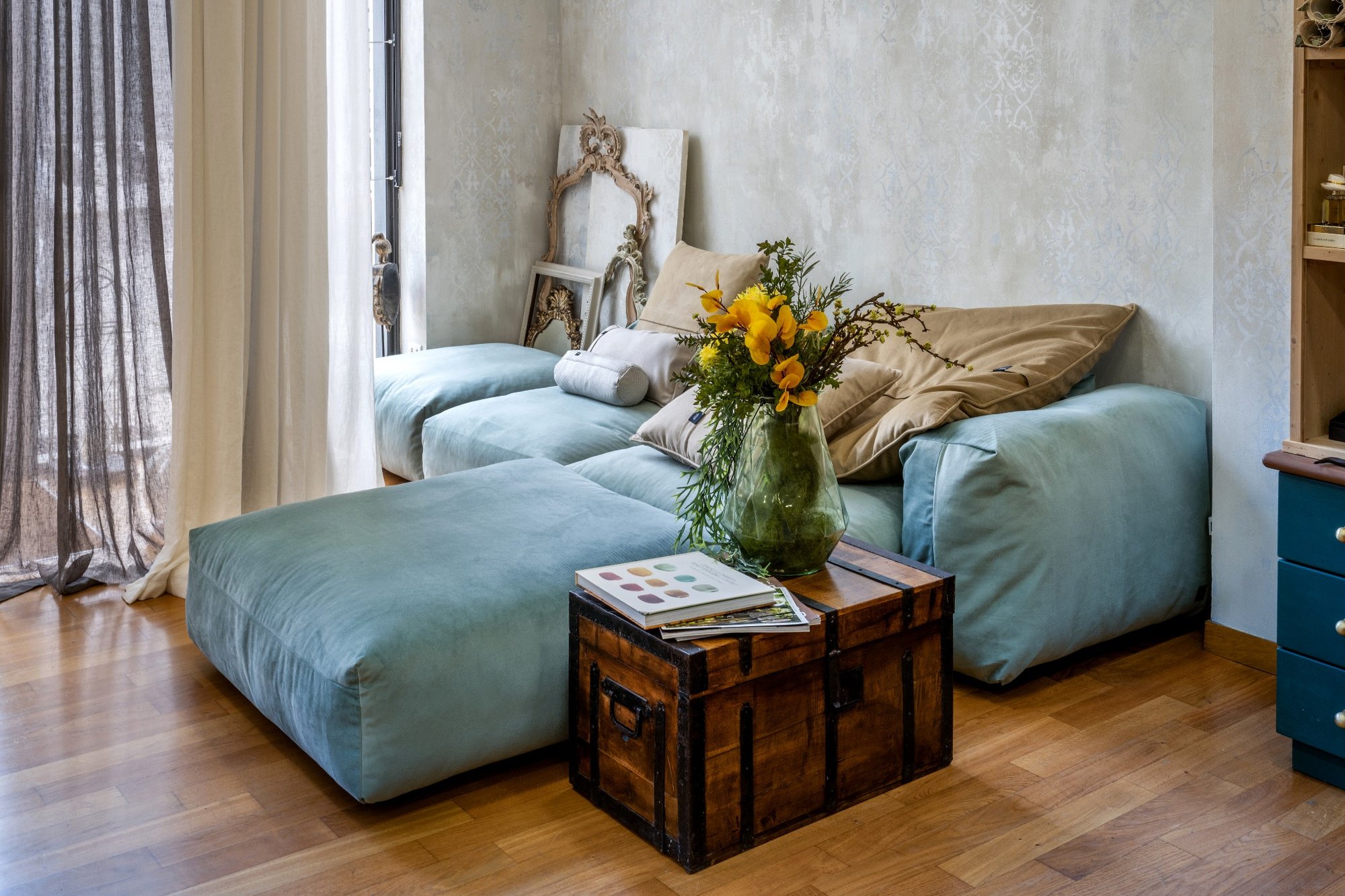 Coordinamento ideale tra pitture, carte da parati, tessili e arredi.